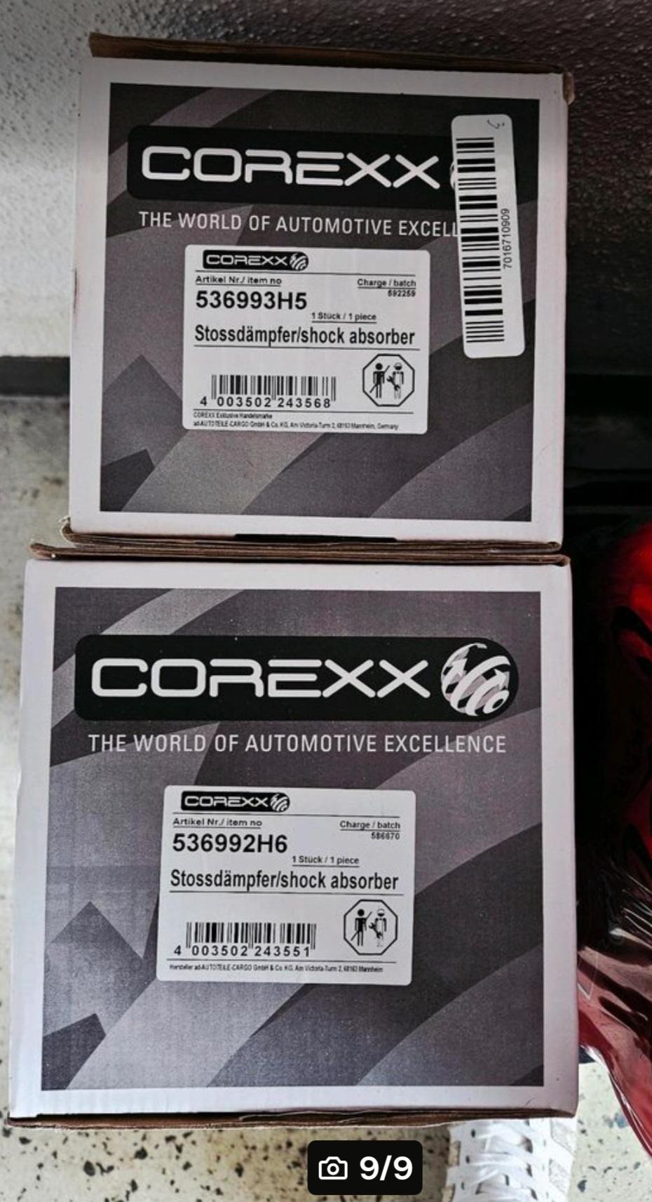 Verkauft werden hier ein paar  neue und unbenutzte Stoßdämpfer  für vorne von der Marke  “ Corexx  „